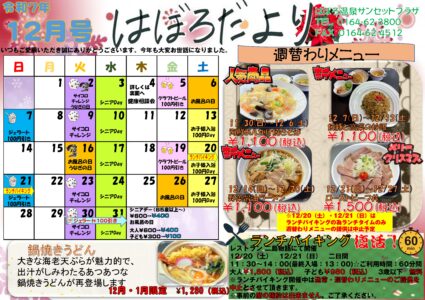 📢【はぼろだより12月号のお知らせ】 いつも羽幌温泉サンセットプラザをご利用いただき、誠にありがとうございます。12月も皆様に心からお楽しみいただけるイベントや新メニュ